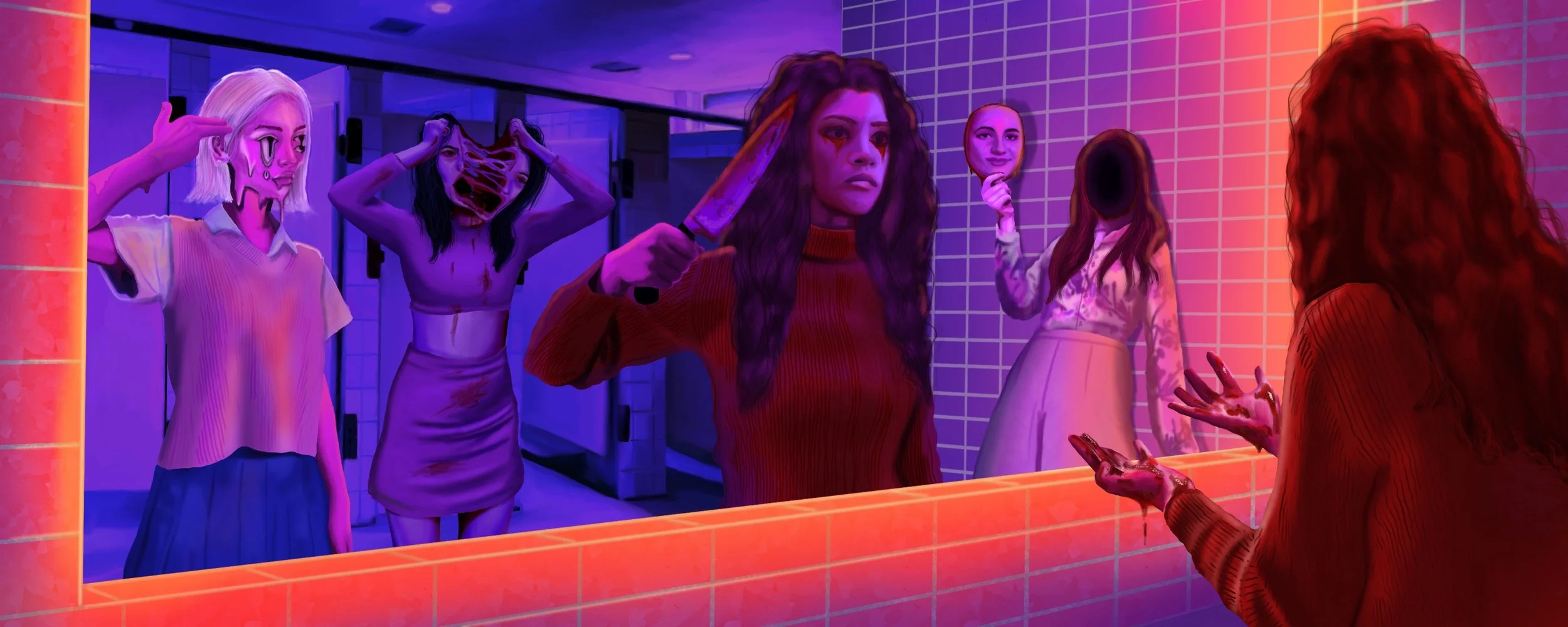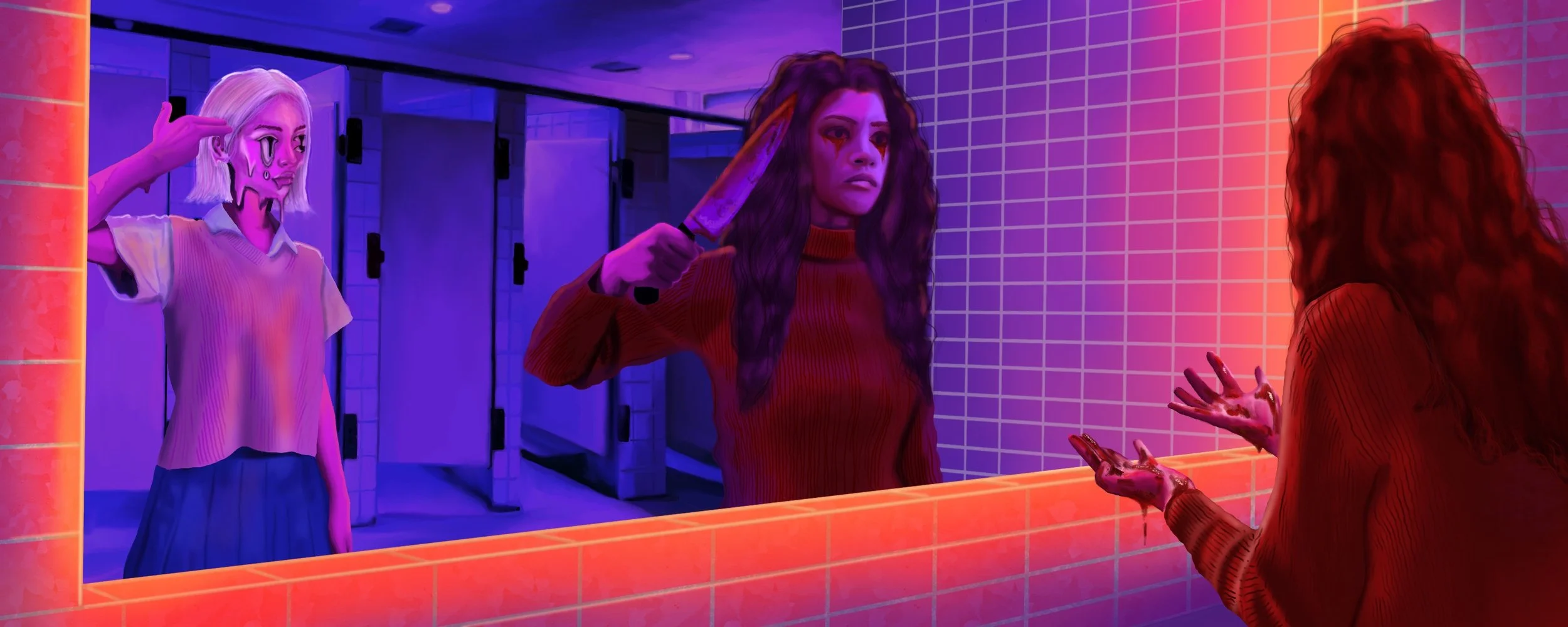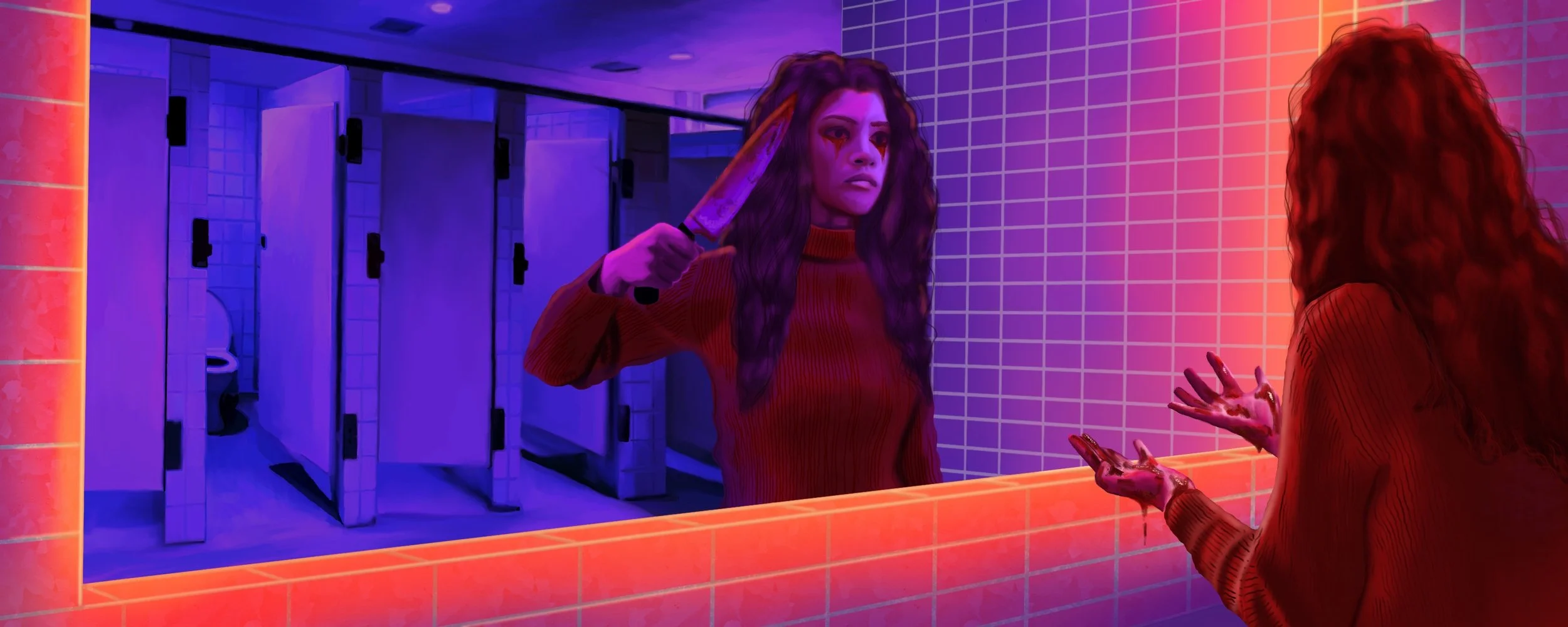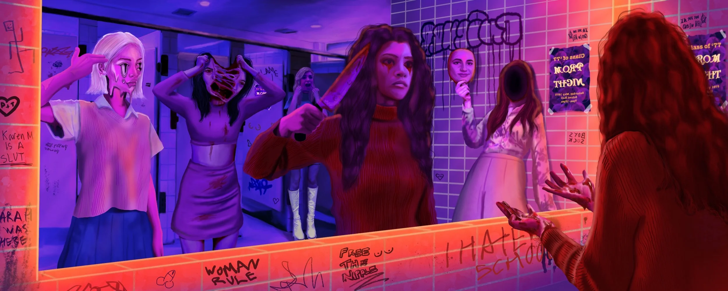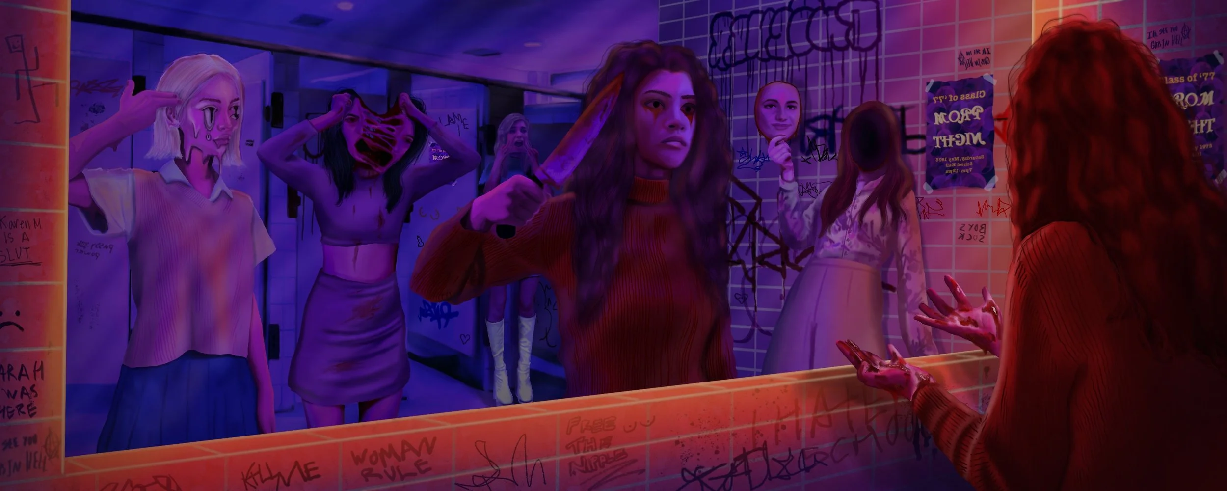 For an illustration unit at university, the task was to reimagine a TV or movie franchise by changing its genre and time period. I chose Euphoria and reworked it into a psychedelic thriller/horror set in the 1970s. While the genre and setting shifted, I kept elements of the show’s original aesthetic—moody lighting, rich purples, and emotional intensity—to maintain its signature atmosphere in a new narrative context.